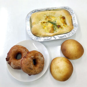 メニュー:・麻婆ピザ・季節のあんぱん・紫芋ドーナツ